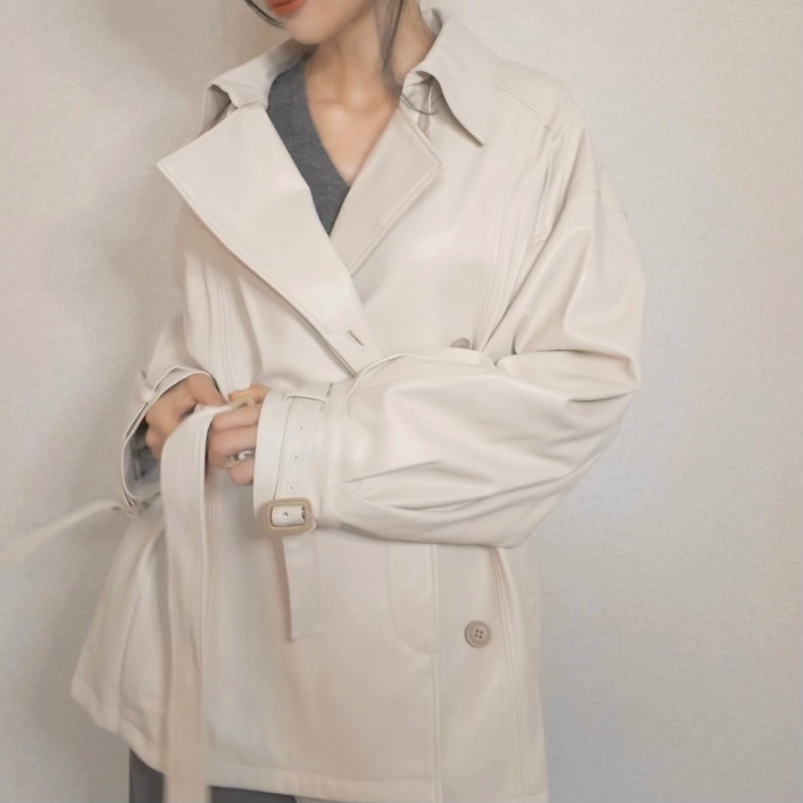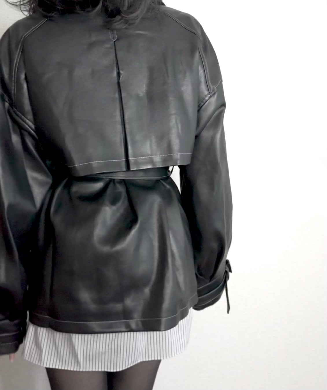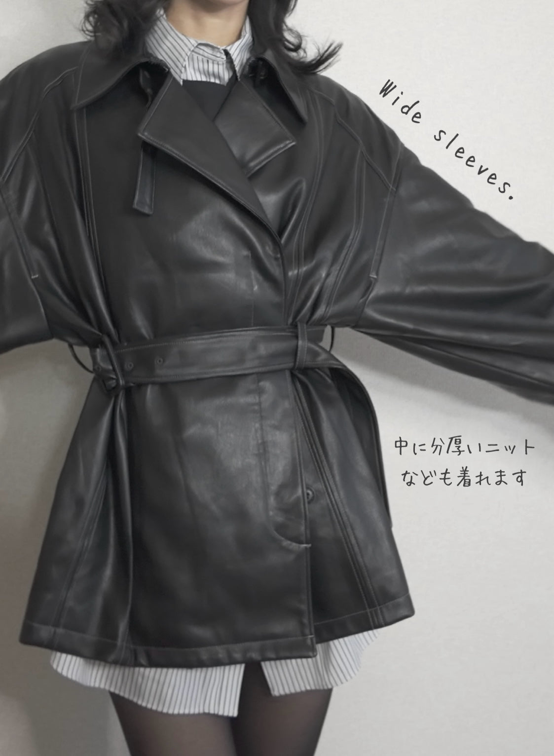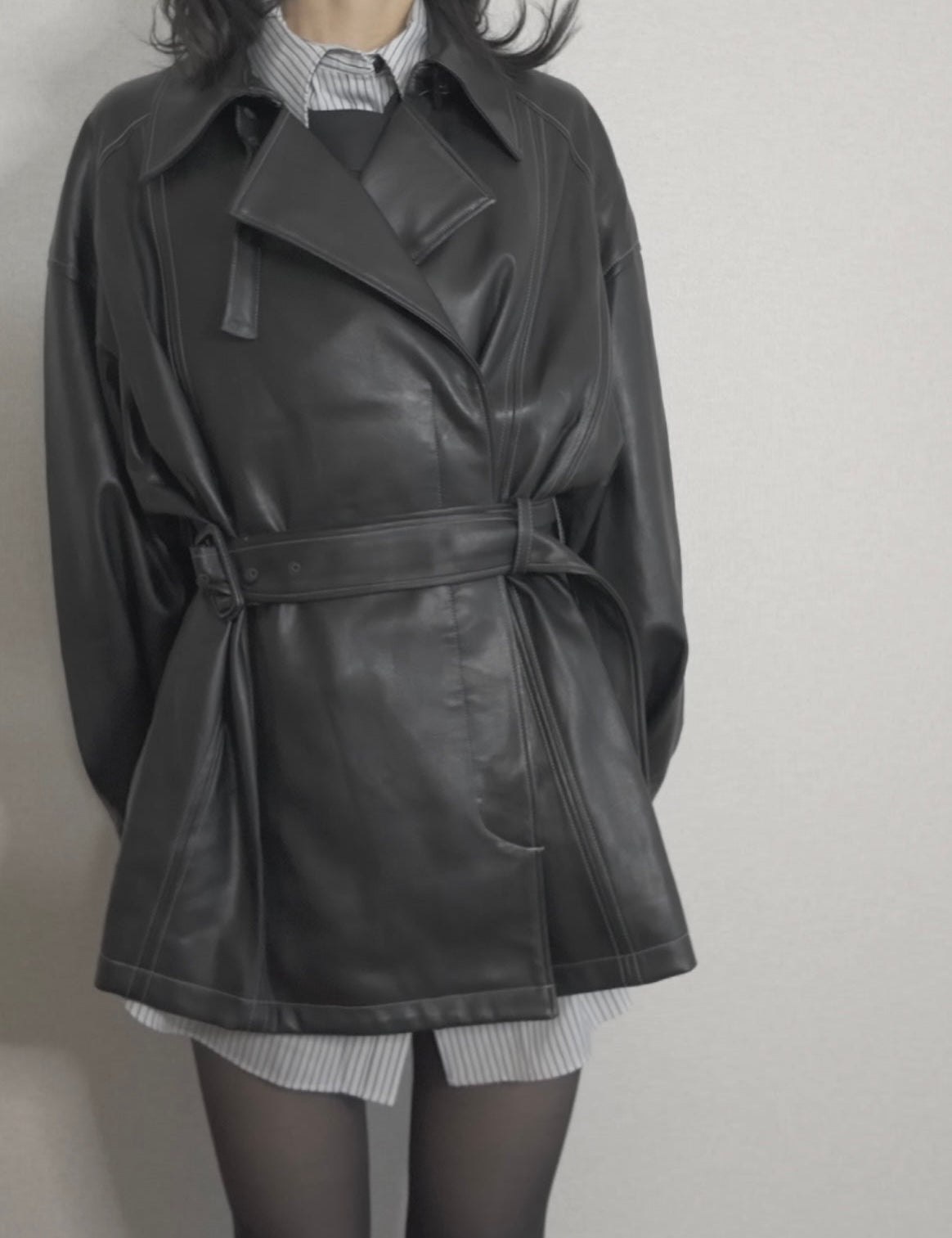 柔らかいヴィーガンレザーで作られたジャケットです。雨もはじくのでレインコートとしてもお使い頂けます☔️